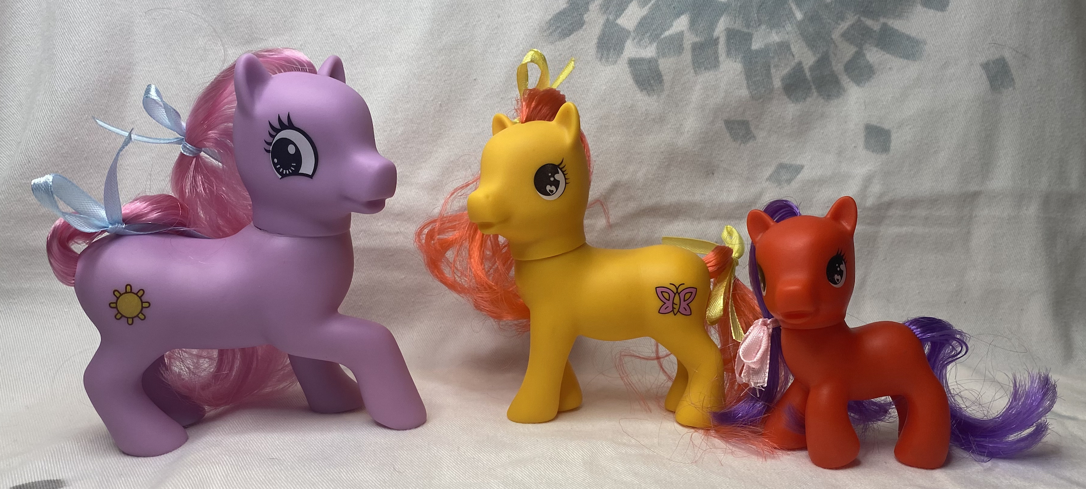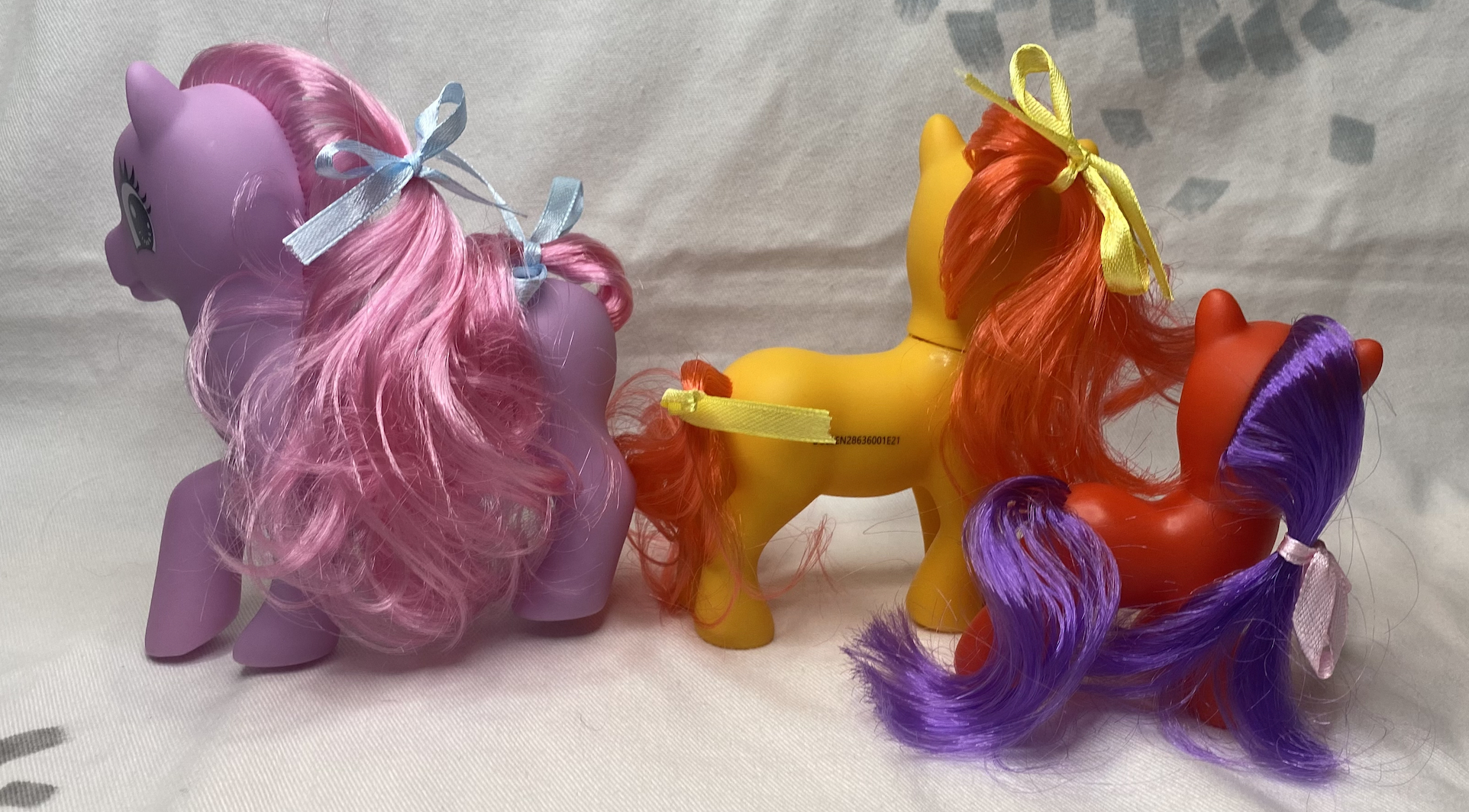 The family horse playset features three nice ponies. The biggest one has a long, wormlike body that reminds me of a hot dog.