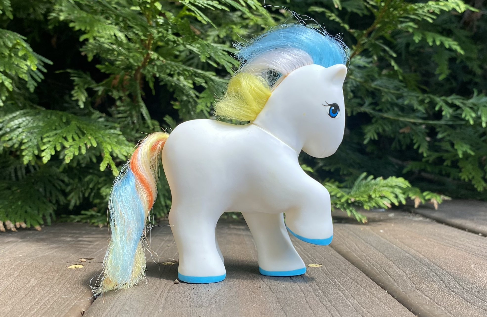 In the late 80s, Remco produced a line of animal toys with brushable hair called Pretty Pets. Various animal shapes were made-- from dogs, cats, and of course, ponies.