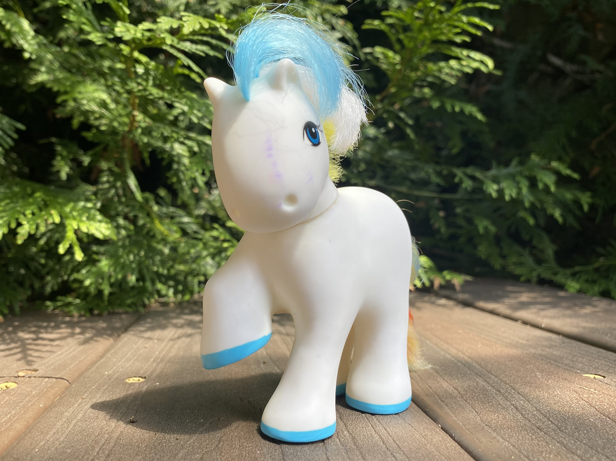 This white earth pony was a lucky find at the thrift store. Her hoof says 1989, and she is in far from ideal condition.