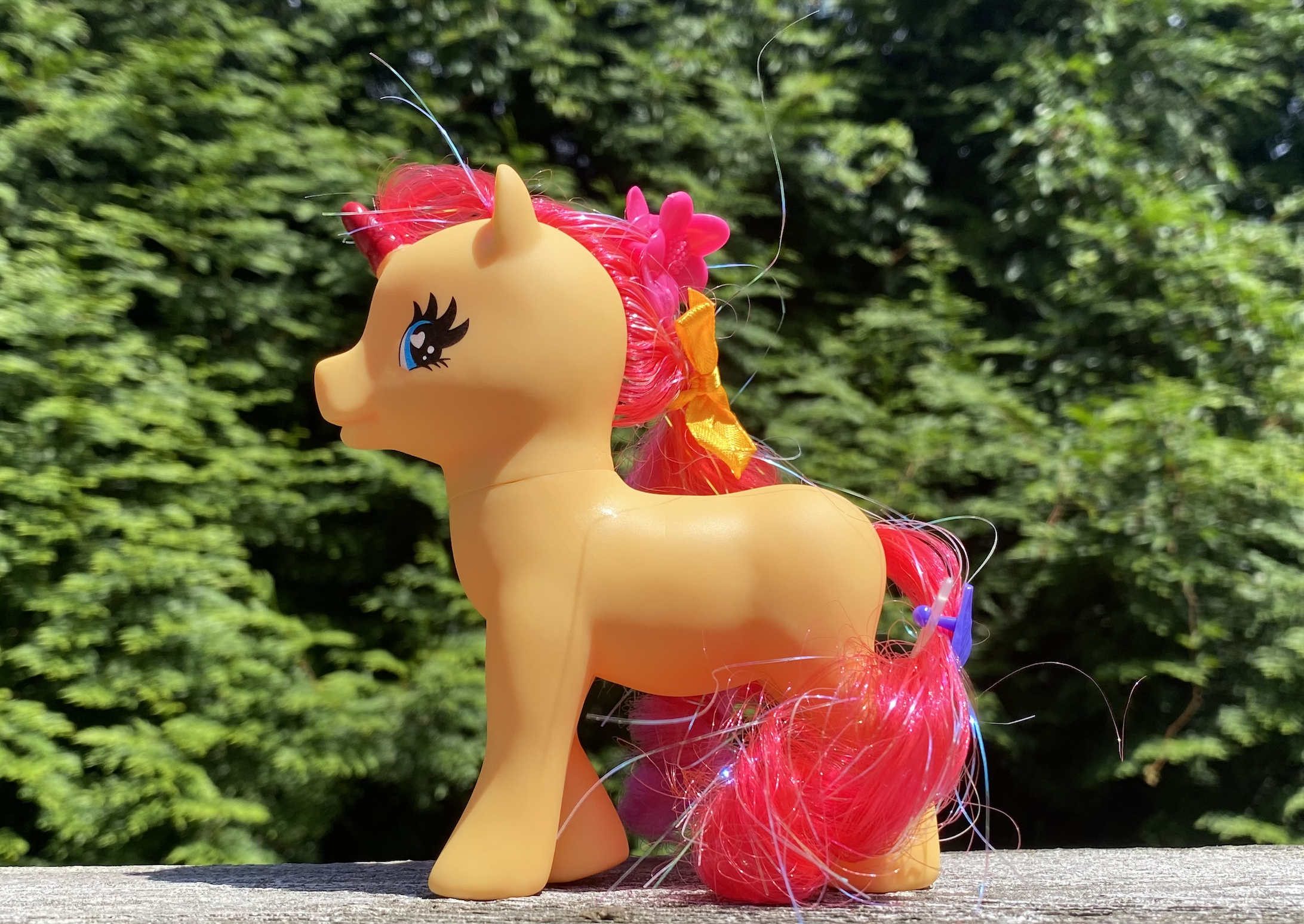 This orange pony seems to be the same as the purple medium-size unicorn pony from the Unicorn Family.