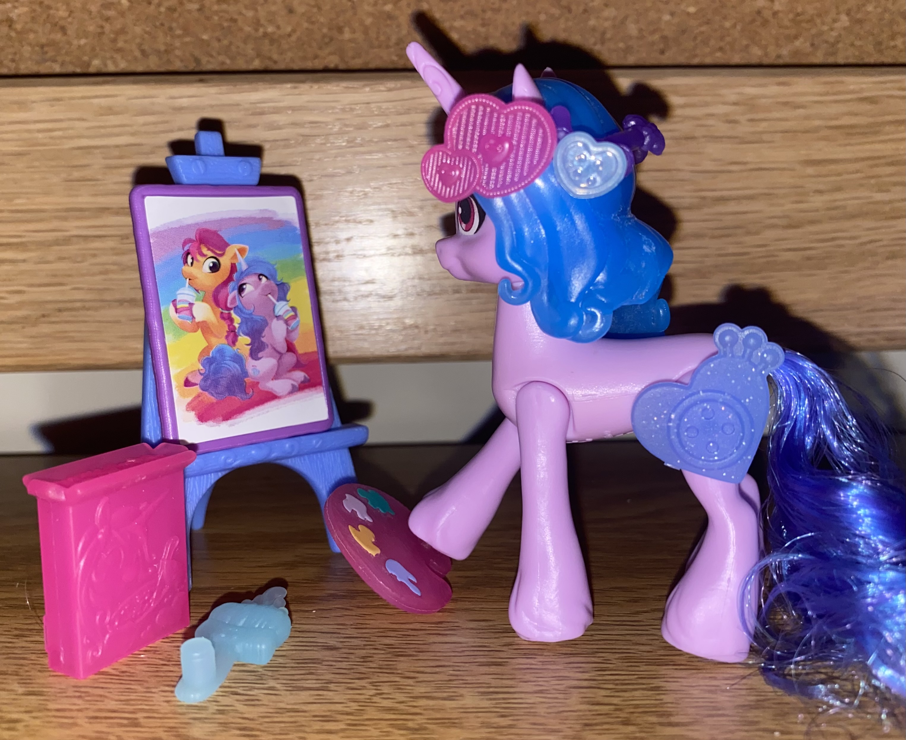 Izzy Moonbow is a little purple fellow that is one of the main characters in G5 of the My Little Pony Franchise.