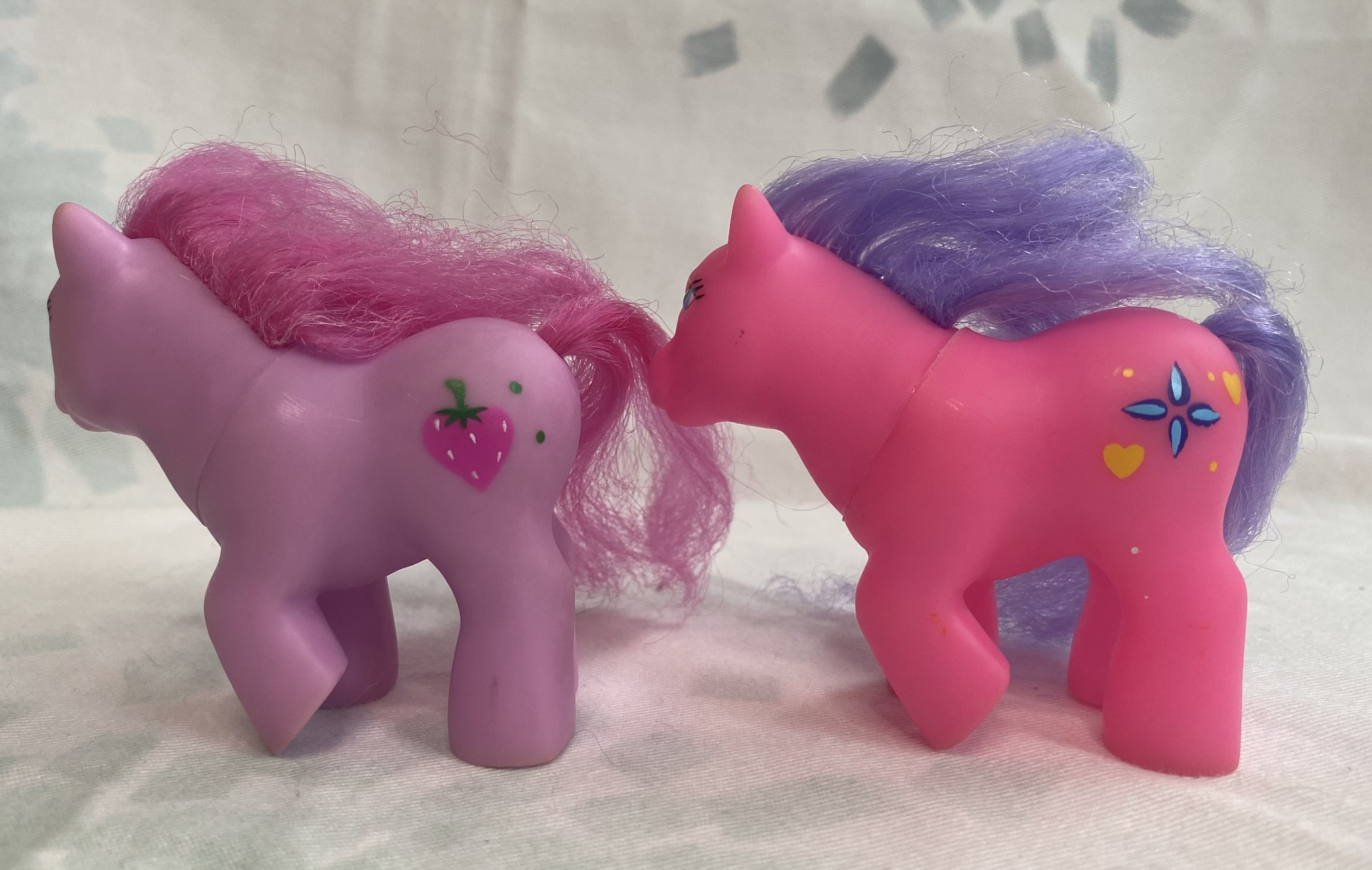An oft-observed phenomena in G1 ponies are rusty backsides, since the stopper used to hold the tail in place is a metal washer.